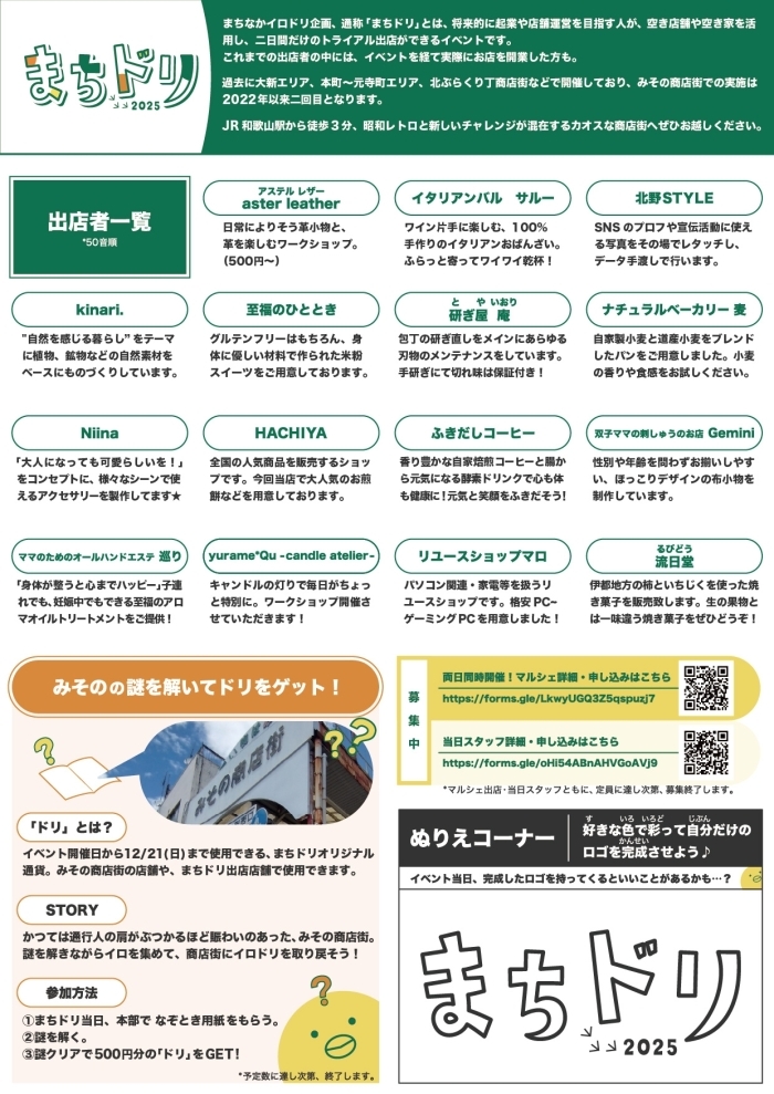 まちドリは、普段は閉まっている空き家や空き店舗、活用されていないスペースなどに、2日間だけの素敵なお店ができるイベントです。