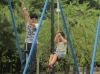 こちらはローラー滑り台や吊り橋のある複合遊具と丘から伸びる二本の滑り台、ロープ渡りなどわんぱくな子ども達も楽しめる遊具が揃っています。
